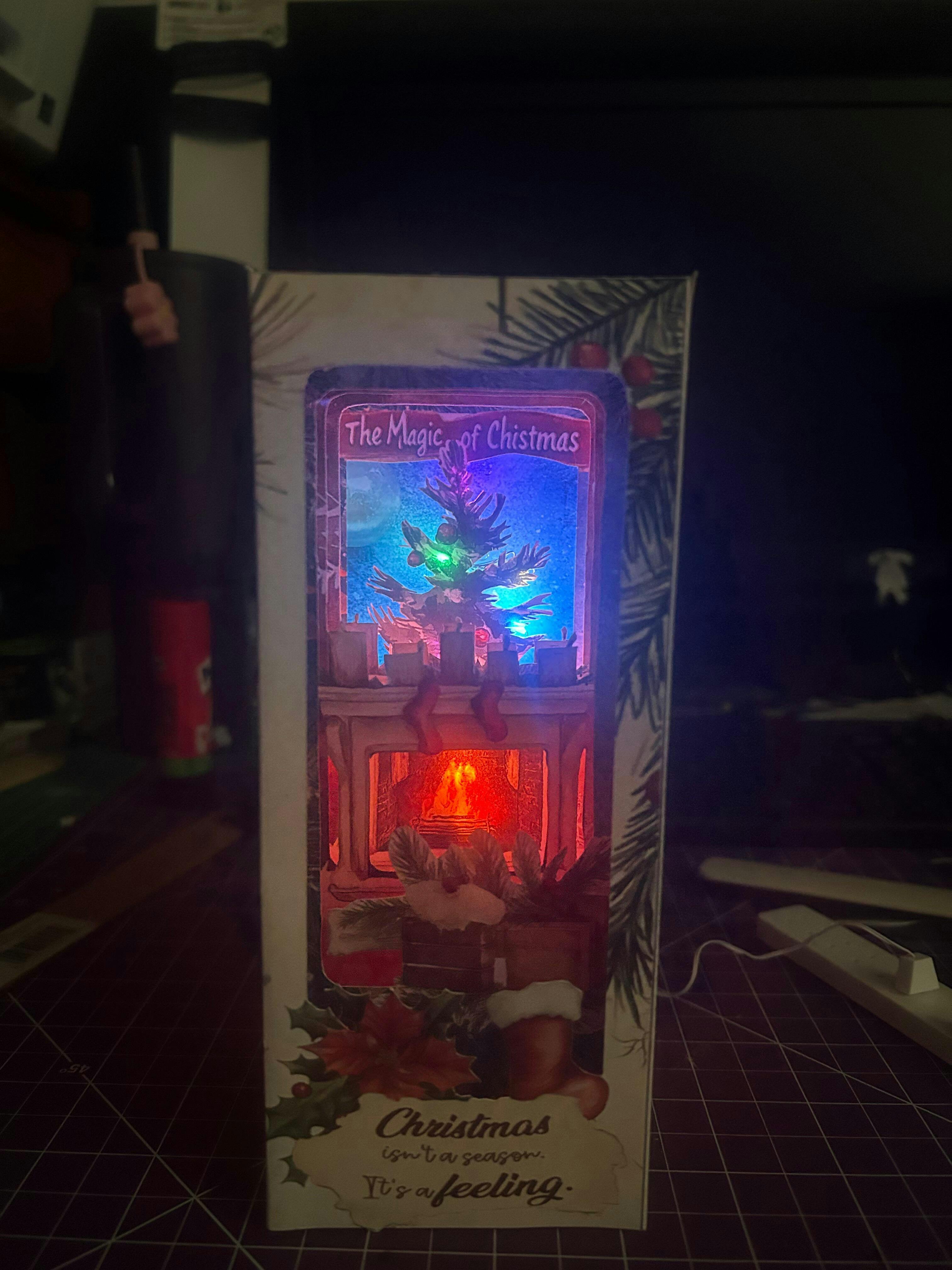 Christmas Home Book Nook Kit – 15 cm Tall Foldable Paper Diorama with LED Lighting
